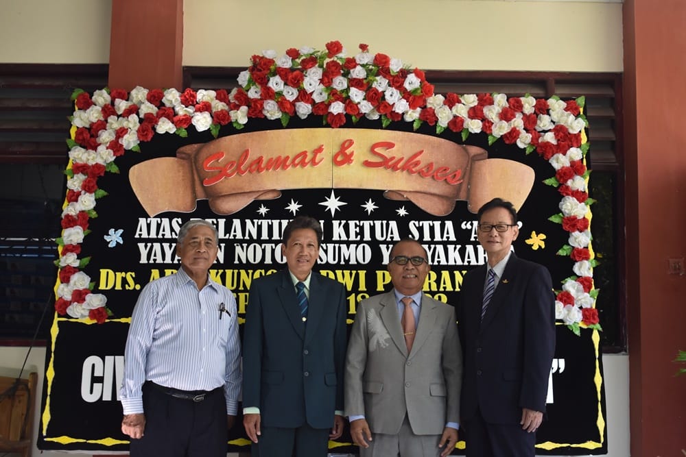 Kami segenap civitas akademika mengucapkan selamat kepada Bapak Drs. Arif Kuncoro Dwi Putranto, MPA., yang telah menjalani tahapan seleksi dan akhirnya dapat dilantik kembali menjadi Ketua STIA “AAN” Yayasan Notokusumo Yogyakarta untuk Periode 2018-2022. Harapan ke depannya, semoga dapat mengemban amanah dan tugas dengan baik dan dapat membawa Kampus STIA “AAN” menjadi lebih berkembang lagi, dapat meningkatkan kualitas serta menghasilkan lulusan yang berkualitas sesuai dengan program kerja yang telah disampaikan.